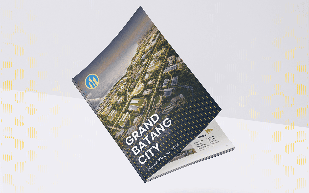 Grand Batang City is a government-backed, sustainable industrial hub expressed through a “Beyond Industrial Estate” identity with elegant layouts and adaptable supergraphics.